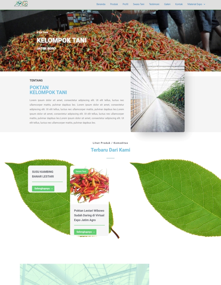 Tersedia layanan Template Website yang dapat dimanfaatkan oleh petani, Poktan, Gapoktan, Asosiasi, Lembaga, Perusahaan, Peneliti, serta UMKM berbasis Agro secara gratis. Disamping itu pengguna layanan akan berjejaring di Web Induk Jatim Agro.